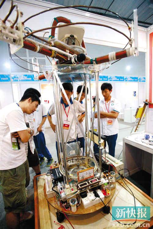 昨日下午,记者在广东科学中心的展览厅内见到了胡永波等人发明的地震预警仪。仪器上布满了各式各样的线圈,在仪器的中间,有一条金属线吊着个金属坠子,铁线周边是个用金属线做成的圆圈,一旦坠子晃动碰到金属线圈,仪器就会报警。“这是教具,真的仪器已经送到有关部门去申请专利了。”胡永波介绍说,汶川地震后,大家都说地震没有办法预测,于是学校的师生决定研究一个仪器试试看。他说,仪器监测地磁波的变化,以及地震的横波、纵波,同时还可监测地球重力的变化,通过电脑对各项监测数据进行分析后,一旦符合地震特征,就会发出预警。
