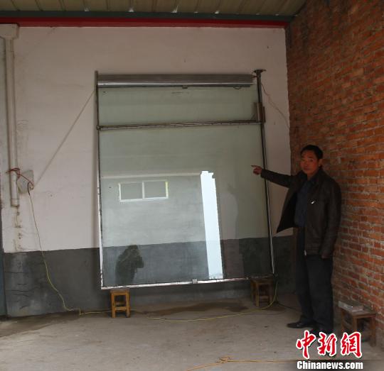 中新网平顶山11月10日电(曹铮)在河南省郏县,有一位农民发明爱好者,他只读过三年书,没有物理化学等学科的理论基础,然而,20年的汽车修理经验却让他对机械痴迷和精通。近日,他发明了一种自动清洗窗户的装置,当感应到玻璃落了灰尘,这种装置便会自己启动清洗窗户,此装置已申报专利,可用于清理高层建筑的玻璃,减少人力作业的风险。11月10日,记者来到河南省平顶山市郏县农民冯贵祥家中,见到了他发明的这种玻璃清洁器。在冯贵祥家中的院子里立着一大块玻璃,他向记者演示玻璃清洁器的工作过程,记者观察到,玻璃清洁器是通过轨道安装在玻璃上方的一条铝合金材质的长方体,贴合玻璃的一侧装有清洁胶皮,如果安装在高层建筑的窗户外面,是几乎不会影响视野和美观效果的。清洁器的一头通过线路与清洁剂相连,另一头则有一台小型电机,通电后,在玻璃的中轴线上下则安装着一对感应装置,当感应装置的范围内有灰尘,清洁器便会自动下滑,在这个下滑过程中有清洁剂自动配合;到达玻璃最下端后,清洁器会自动回升,此时,便没有清洁剂配合作业,清洁器的主要任务是刮干净玻璃上的水渍。