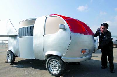 海口晚报网11月1日讯 昨日,广州农民张斗三在当日开幕的珠海航展上介绍他发明的陆空两用车。几年前,张斗三曾在自家的天台上制造出一架名为“斗强三号”的飞机,引起了全国媒体的广泛关注。在2002年的第四届珠海航展上,他向人们展示了扑转翼飞p; &n己发明的陆空两用车带到了今年的珠海航展上。