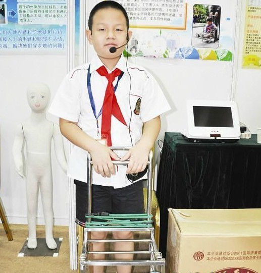 单看这辆特制购物车的外观,和一般的行李车并无太大差别,但是,小天朗发问了:“如果像上次一样,奶奶想从超市买回两大箱牛奶,却又放不下,怎么办呢?”他开始演示:“你瞧,我这辆‘多功能购物车’的左右篮板和前篮板是可拆卸折叠的,当这三面篮板拆卸折叠起来时,它超大的底盘就可以放下体积大的物品。相反,如果通过我设计的两个N形插销,把篮筐组成后,你就可以装糖果、冰激凌之类的零散物品了!” 小天朗介绍,前篮板被做成了不对等折叠,这样一来,当前篮板折叠平放时,底盘就变长了,体积大而且重的物品放在上面,重心就更平稳了。他说,“有时候出去玩,有些孩子总吵着要大人抱,这辆购物车还可以当临时儿童车使用,而且有左右篮板的保护,可以放心地让孩子坐在车上推着走”! 另外,为了方便装运禁不起挤压的水果或其他物品,小天朗还在购物车的拉杆上增设了挂钩。“从去年10月份跟着奶奶上超市买东西有了这个想法后,我就开始动手制作,改了很多次,快一年了才完成!” 目前,国家知识产权局已经受理了“多功能购物车”的专利申请。