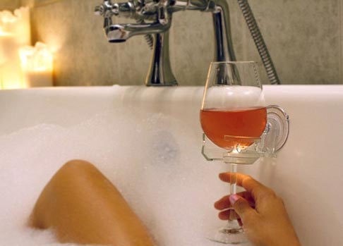 中新网12月17日电 据外媒报道,辛苦工作后下班回家,不少人会想沐浴或喝酒放松一下,美国一对兄弟发明的便携式杯架,便可同时满足这两个愿望。 报道称,只要把“SipCaddy”杯架吸管贴在浴室墙身或浴缸表面,便可放置酒杯,让用家边洗澡边品尝美酒。“SipCaddy”的特别之处在于承托容器的胶圈可放大缩小,故能容纳不同大小的玻璃杯、啤酒罐或水樽,非常方便。