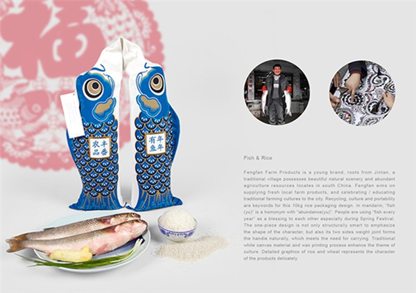 鱼和「余」在中文里有同样的发音,所以人们以「年年有鱼」来象征每年的丰收富足的意义。设计师Johnson Xiang将这个概念融入到产品设计当中,为大家带来了这样一款非常有设计感的包装产品。一体式米袋的设计不但在结构上呈现出新颖,亦完美体现造型美感,而最重要的是这个设计连接两边的重量形成一个自然的把手,满足了包装需要提领、或者肩扛的功能需要。非常贴心喂!