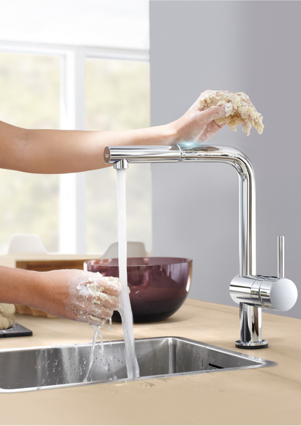 经常在家做饭的小伙伴们,是不是时常遇到这样的状况。在厨房忙忙碌碌的为家人准备佳肴,手上沾满了面粉或者需要用手搅拌的蔬菜和调料,这时想要用水是件麻烦的事情。而这款由水龙头制造商 GROHE 开发出的一款应用了可触摸技术的创意智能家居产品就能完美帮你解决以上问题。轻轻触碰水龙头上方,你就懂了!