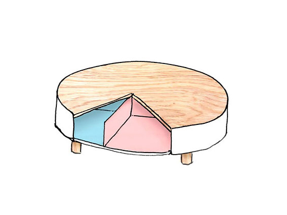 从常见的饼图获得启发,Gon愀氀漀 Campos 为法国新兴品牌 Polit 设计了 Times 4 coffee table。这是一款简单而实用的小桌子,既能满足存储需要,又独具个性,整张桌子内设置了四个独立分区 ,通过旋转中轴可自由选择隐蔽或者展示。