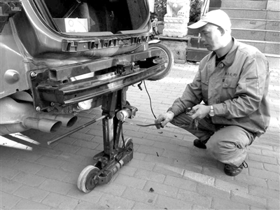 陈先生演示了该行走装置:首先车辆前部进入车位,驾驶员下车用遥控装置使车辆升起。当后轮全部离开地面后再次按动遥控器,车辆开始向右侧缓缓移动。大约30秒钟后,车辆平稳进入车位。目前,陈先生正在完善移车装置并递交了专利申请。 记者 王承旺