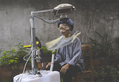 我要发布信息 | | 男子16年“玩”坏18个头盔 发明立式自动洗头机 | 2015/09/18 |  | 38岁的乐山井研男子陈攻科,就将此变成了现实:16年时间里,他“玩”坏了18个头盔,终于发明出了立式全自动按摩洗头机,并获得了国家实用新型专利。昨日,央视《我爱发明》栏目记者也专程来到陈攻科家中,聚焦他发明创造的洗头机。 一个铁架子顶部挂着摩托车头盔,旁边摆着两个塑料水箱,还有一块控制面板……陈攻科的父亲陈述明戴上防水围脖,坐在椅子上,轻轻按下一个按钮,摩托车头盔自动下降罩在他头上,他再次按下按钮,摩托车头盔便在他头上摆动按摩起来。 陈述明坐在椅子上,一副很享受的表情,头盔里出水、喷洗发剂、按摩洗发、冲洗、再喷洗发剂、再冲洗,一条龙服务,大概5分钟过后,洗头完毕。头盔伸起后,陈述明又按下一个按钮,上方的电吹风吹出阵阵热风,很快将他的头发吹干。中国广播网 |