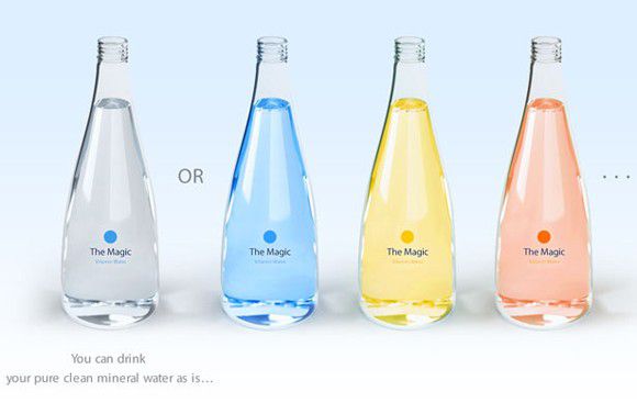 这个瓶子有一个特殊的盖子设计,饮用的时候你需要用劲按下盖子释放隐藏的碳酸维生素片,这样瞬间一瓶碳酸饮料就有了,如果你喜欢和纯净水,那么拿掉盖子就可以直接饮用了~