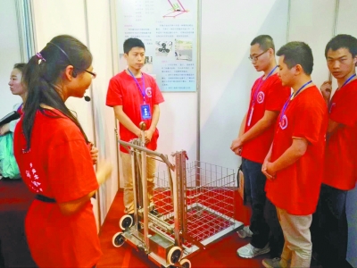 我要发布信息 | | 武汉大学生发明折叠升降小车 解决快递哥三大难题 | 2016/06/05 |  | 武汉晚报讯(通讯员盛碧丹 毛玉清 记者屈建成)每到全网大促销时期,恐怕就是快递小哥们最头疼的时期了,快递货物数量激增,派送难度加大,并且电视冰箱等重型货物难以搬运。近日,武昌首义学院戴长红等5名同学设计出一款折叠式电动升降小车,不仅解决了快递哥的三大难题,还获得了湖北省大学生创新大赛一等奖。 戴长红是机械电子工程专业一名大三的学生,也是折叠式电动升降小车的研发者之一。 一天,他看到“快递小哥送货,小快递车被偷”的新闻,于是他就想,“能不能设计出一款轻便,易随身携带的快递送货车?” 折叠式升降小车不像传统运输货物的“大叉车”那样笨重,它展开时高为160厘米、宽60厘米,22.8千克重,在戴长红的手里前后折叠几次就像变魔法般成为一件“小手提箱”,变得仅仅只有25厘米高。戴长红说,产品的大小还可以根据用户的需求进行调整。 小车为何可以轻易折叠?戴长红告诉记者,其奥秘在于内部的一个“折叠合页”。在导轨与导轨的连接中装上折叠合页,当小车需要进行工作时,便将导轨展开。当小车结束工作时,便将其折叠减少占用空间,可放在车的后备箱。体积小,易于单人携带,似乎与“折叠自行车”有异曲同工之妙。 除了运载货物外,小车还兼具搬动、升降货物的功能。 通过该校副教授石从继的指导,这件折叠式升降小车采用蓄电池作为移动电源,相当于它的“动力机”;以电动推杆作为动力升降装置,可以用来升降50千克以内的货物;以滑轮装置用于扩大行程,最高可升至1.5米。这样,无论是较重型还是轻小型货物都可以搭乘这座“小电梯”,轻轻松松“上楼”,一次性完成上、下车装载、搬运、派送等操作,大大降低快递员劳动强度。 |