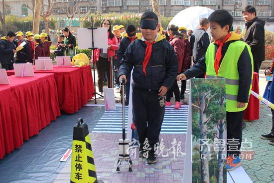 同学们扮成盲人排队体验智能拐杖。 齐鲁晚报·齐鲁壹点 记者 李飞 摄在一处科技体验区,该校四年级一班学生庞谦硕和爸爸庞国栋发明的智能拐杖“吸粉”无数,同学们纷纷戴上眼罩排队体验。记者看到,这一智能拐杖与普通拐杖看起来无异,但底部多了一个盒子,里面装着电源和喇叭,手柄处多了一个白色的雷达探测器。“它不是普通拐杖,是专门为盲人设计的。”庞国栋介绍,这一发明利用的是超声波传感器测距原理,类似汽车上的倒车雷达,当探测到前方有物体时,信号传给控制器,拐杖就会发出“嘀嘀”的声响。“距离障碍物大概一米时,拐杖就会发声,距离越近,声音越急促,提醒盲人前方有障碍物,需要绕行。”据了解,这一发明源于四年级一班班主任郑斌老师在全班组织的给盲人献爱心的社会实践活动。“郑老师制作了一份关于残疾人的调查问卷,我们兵分几路,分别到泉城广场、洪楼广场和大明湖公园进行了发放。”参与者之一,该班同学李嘉诚告诉记者,问卷发放并回收了二百多份。“同学们调查发现盲道经常被占用,盲人出行比较难。”庞国栋说,盲人出行一般也会带个盲杖,但感知度较差。于是在班主任的提议下,全班同学就有了设计一款智能拐杖的想法。 作为一项寒假实践作业,从事机械设计工作的庞国栋和儿子庞谦硕从去年寒假就开始了设计制作,前后用了两个多月,终于成功。“只要拐杖感知到前方的障碍物,就可以发出声响。设计虽小,却为残疾人朋友提供了便利。”庞谦硕说。父子俩表示,智能拐杖还有改进的空间,目前已经申请专利。“等专利申请下来,希望能有厂家合作,进行推广应用。”(齐鲁晚报·齐鲁壹点 记者 李飞 实习生 程子函)