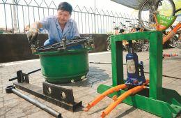 我要发布信息 | | 爱发明的维修工 | 2017/05/17 |  | 今年59岁的喇建中师傅,原来是一名汽车修理工,遇到难题爱琢磨,喜欢改装。2014年他来到新岗位,成为太原公共自行车一车队的一名维修工。 因为工作中一些常用的修理工具磨损得太厉害,所以,爱琢磨的喇师傅用废旧材料做成了三件维修工具:车圈扭曲矫正盘、拆卸后轴齿轮座和前叉整形架。三件“小发明”大大提高了整个车队工作效率,喇师傅因此今年获得了太原市总工会“五小岗位创新竞赛三等奖”。看着这些使用方便的工具能减轻工友们的工作难度,喇师傅心里也美滋滋的。 5月16日,喇师傅用自己的“小发明”修理自行车。 喇师傅展示他获得的“五小岗位创新竞赛三等奖”证书。 本报记者 武六红 通讯员 陈志敏 摄影报道 来源: 山西晚报(太原) |