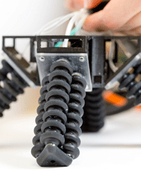 而Dylan Drotman和Tolley UCSD实验室的学生们一起发明了一种新型的方法——用3D打印来制作软体机器人的足结构,极大地简化了制作工艺。使用这种打印方法,机器人的整个四足结构几乎可以轻松地被打印成一个单一的部分。但由于打印材料的性能要求具有特殊性,需要利用柔软橡胶材料和刚性材料的定制混合物来产生可调整坚固度的最终产品,一般的3D打印机难以做到。这次研究人员使用的是3D打印巨头Stratasys公司的Objet350 Connex3进行打印,其成本也是非常昂贵的。