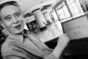 “我利用晚年时间发明了一种汉字输入法,非常适合老年人上网、使用电脑,我想为社会做点贡献”。6月23日,本报的热心读者王老先生找到记者,表达了自己的心愿。并在报社为记者讲解、演示了这种汉字输入法。 今年71岁的王全中老先生是一名退休干部。对于此发明的初衷,王老先生觉得,现在常用的汉字输入法都有一定的缺点。例如:五笔字型输入法,是根据横、竖、撇、捺、折来拆分汉字的,记起来不是很容易,尤其是老年人;智能ABC输入法,出现的重码汉字很多,需要一个一个的选择,而且用的是拼音,现在的人几乎都用这种方法,容易出现只知道字的读音,不清楚字的写法的现象。所以自1995年退休回家后,王老先生就一直研究一种比较简单,同时适合老年人使用的汉字输入法。最后终于用了10年的时间发明了这种部首输入法。