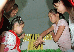 日前,重庆市石新小学6年级的王宏杨同学发明了一种新式盲道,这种盲道试图利用地砖上的凹凸图案,让盲人通过脚掌来“读取”地面上的文字,为其提供有关出行信息。