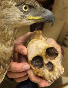 我要发布信息 | | 科学家发现:人类祖先曾是鸟类的口中餐(图) | 2006/01/14 |  | 著名的古人猿“汤恩小孩”究竟是被什么动物所杀?日前,科学家终于找到了答案,并称人类的祖先曾经是鸟类的食物。 “汤恩小孩”葬身鹰口 据路透社1月13日报道,科学家12日宣布,已有充分的证据显示“汤恩小孩”葬身于老鹰之口而非先前推测的美洲豹等动物。1924,南非汤恩地区发现的一具大约3岁至4岁的非洲南方古人猿头骨化石被称作“汤恩小孩”。科学家认为,“汤恩小孩”有200万年历史,它混合了猿和人的特征。科学家将其称为“南方古猿非洲种”或是“南非人猿”,认为它是有关人类进化的最戏剧性的发现。 来自南非约翰内斯堡的威特沃特斯兰德大学古人类学家伯杰博士分析说,老鹰很可能将“汤恩小孩”叼到鹰巢中为食,并啄出其眼睛吃掉;最后,“汤恩小孩”的头骨从鹰巢中掉出,200万年后才被人发现。 找到谜底的关键线索 40多年来,科学家一直怀疑“汤恩小孩”是被美洲虎或豹等动物所杀。但10年前,伯杰博士和他的同事提出——“汤恩小孩”是被一种猛禽所杀,但当时这种论断也仅为一种推测而已。直到后来,当伯杰重新阅读了一份由美国俄亥俄州大学研究人员提供的有关被一种名为非洲猛雕的老鹰捕杀的灵长类动物的材料后,“汤恩小孩”的死因才终于有了新的科学解释。 科学家们发现,从遗留在被非洲猛雕捕食的动物遗骨上的痕迹判断,杀死“汤恩小孩”的凶手是鸟类而不是虎豹等动物。伯杰指出:“老鹰在捕食猴子时,用锋利的爪子和喙将猴子眼睛啄出,并在眼眶上留下了痕迹。这个重要线索将‘汤恩小孩’的死与老鹰联系起来,但以前我们没有注意到。”当伯杰重新研究了“汤恩小孩”的头骨后指出:“在它的眼眶部位,我发现了那些被啄破的痕迹,包括我在内的数千名科学家对这些痕迹做了研究,认为它是老鹰留下的。” 猛禽食人促进人类进化 伯杰指出:“鸟类以人类为食的历史也促进了人类的进化发展,如直立行走和群居。地面上直立行走的人在猛禽眼中变成更小的目标,有效地防止了猛禽的袭击;而人类群居也更有能力抵抗空中猛禽的攻击。”伯杰还表示:“有关‘汤恩小孩’的新发现表明,永远不能停止对事物的研究,因为即使被研究了好几年的东西也可能让你有新的发现。” (来源:国际在线) |