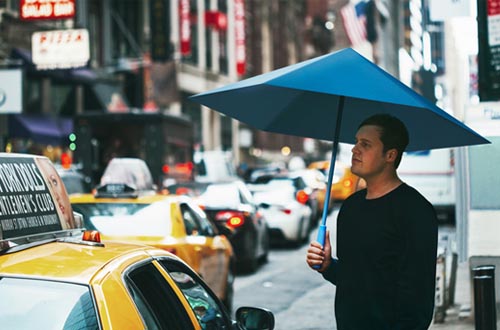 matthew waldman和justin nagelberg合作设计的SA折纸雨伞,它内部没有金属部件,也没有滑动组件,仅靠伞柄底部简单旋转和集成弹簧装置,即可控制有六块引导板的伞盖开合,类似于折纸手工品的平面张力,形成了其独特的功能结构。目前这款产品正在kickstarter众筹。
